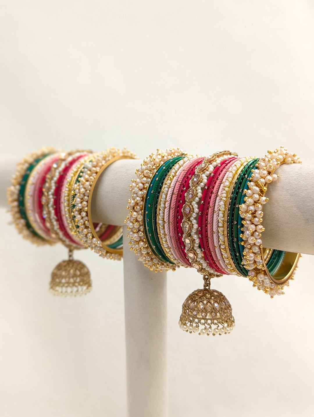 Ruby and Pink Polki Jhumki Bangles- 2 HAND SET