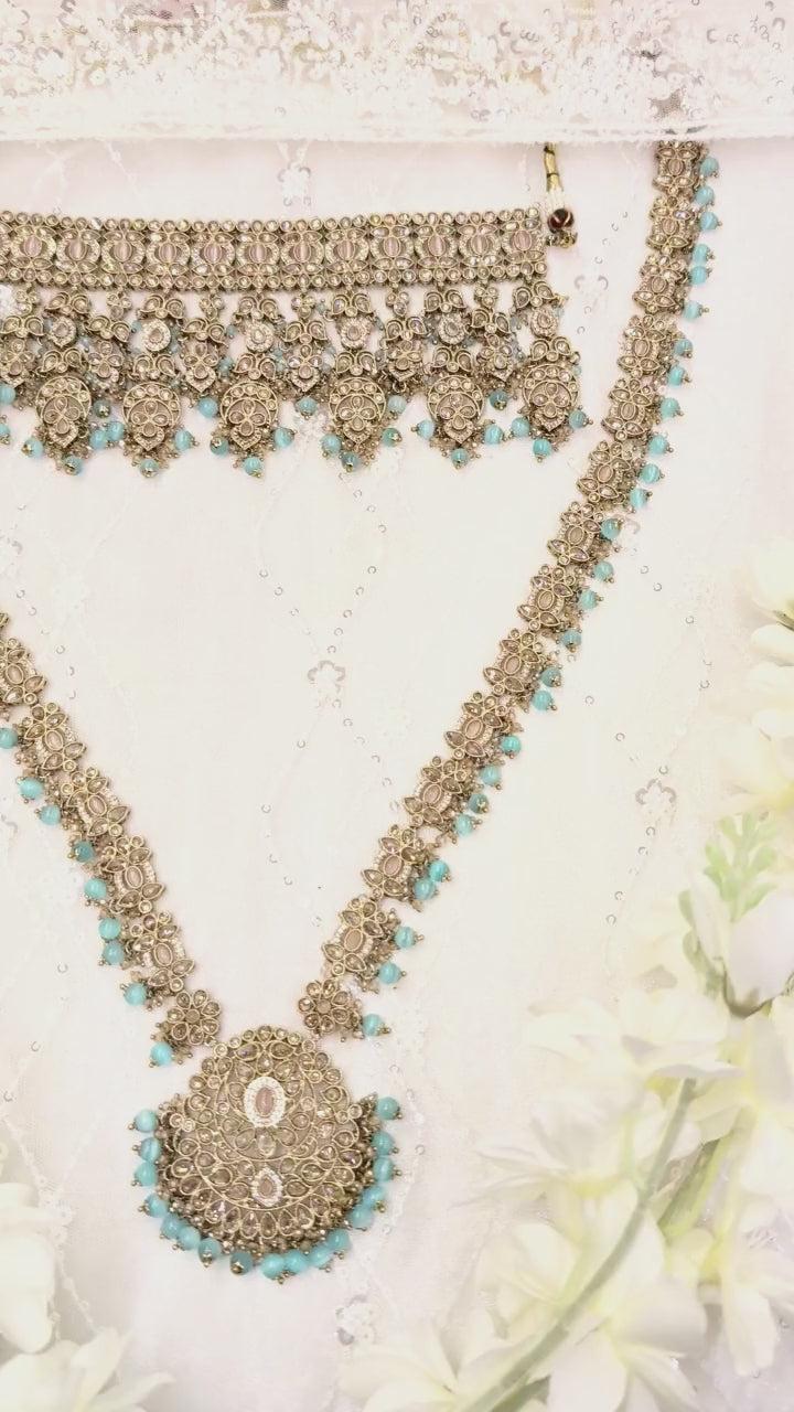 Includes: Necklace, Mala, Earring, Jummar, Hand Piece, Nose Ring and Maang Tikka