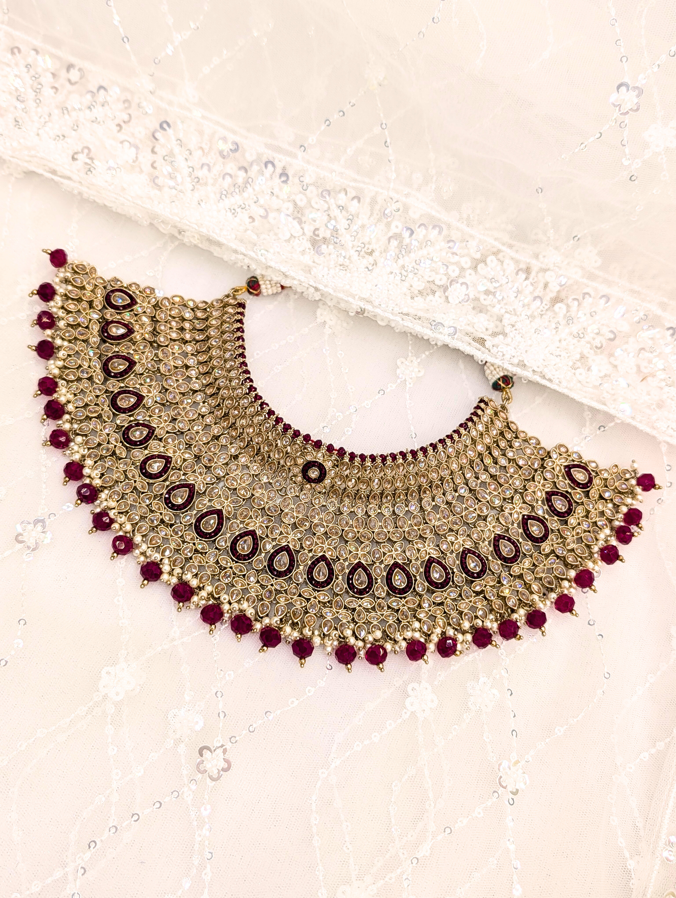 Includes: Necklace, Mala, Earring, Jummar, Hand Piece, Nose Ring and Maang Tikka