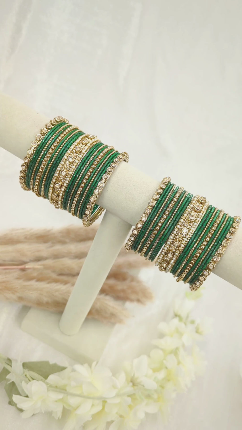 Add a touch of sparkle to your style with these beautifully handcrafted stone bangles. Each piece features dazzling stones set in a durable metal base, combining traditional artistry with modern sophistication. Perfect for weddings, festivals, or everyday wear, these bangles bring out your inner grace and charm with every movement.