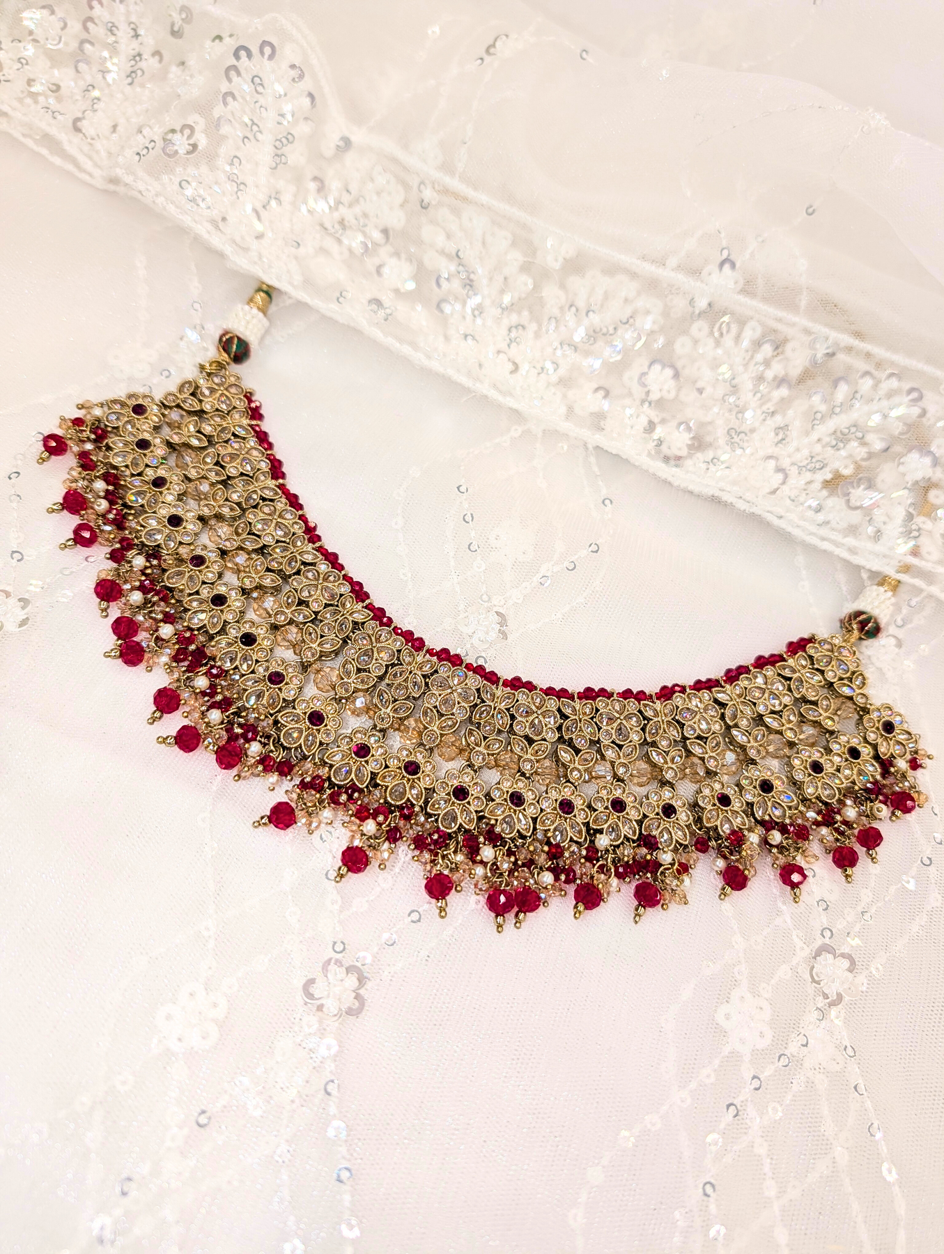 Includes: Necklace, Mala, Earring, Jummar, Hand Piece, Nose Ring and Maang Tikka