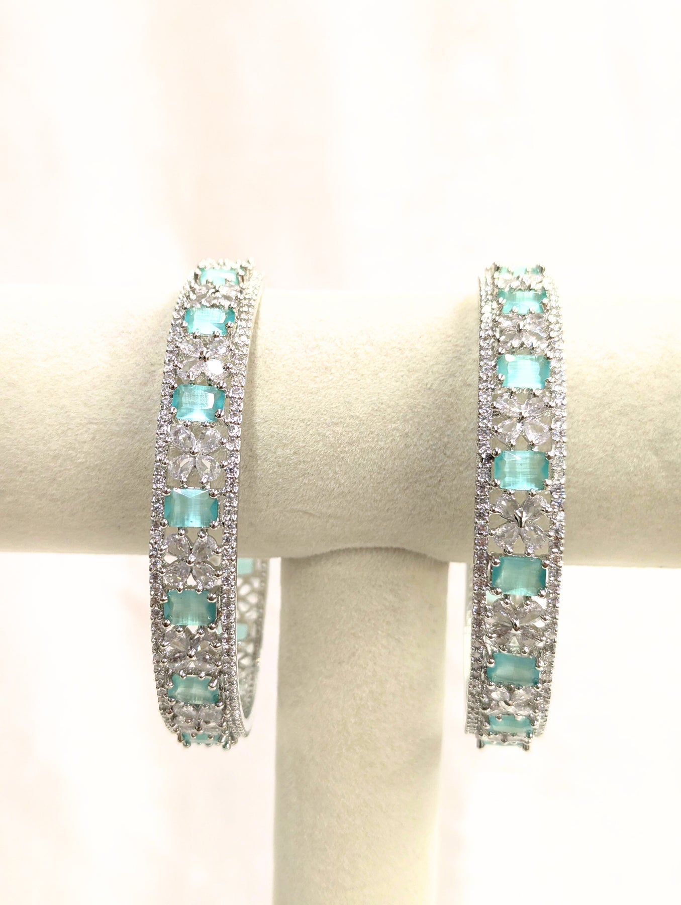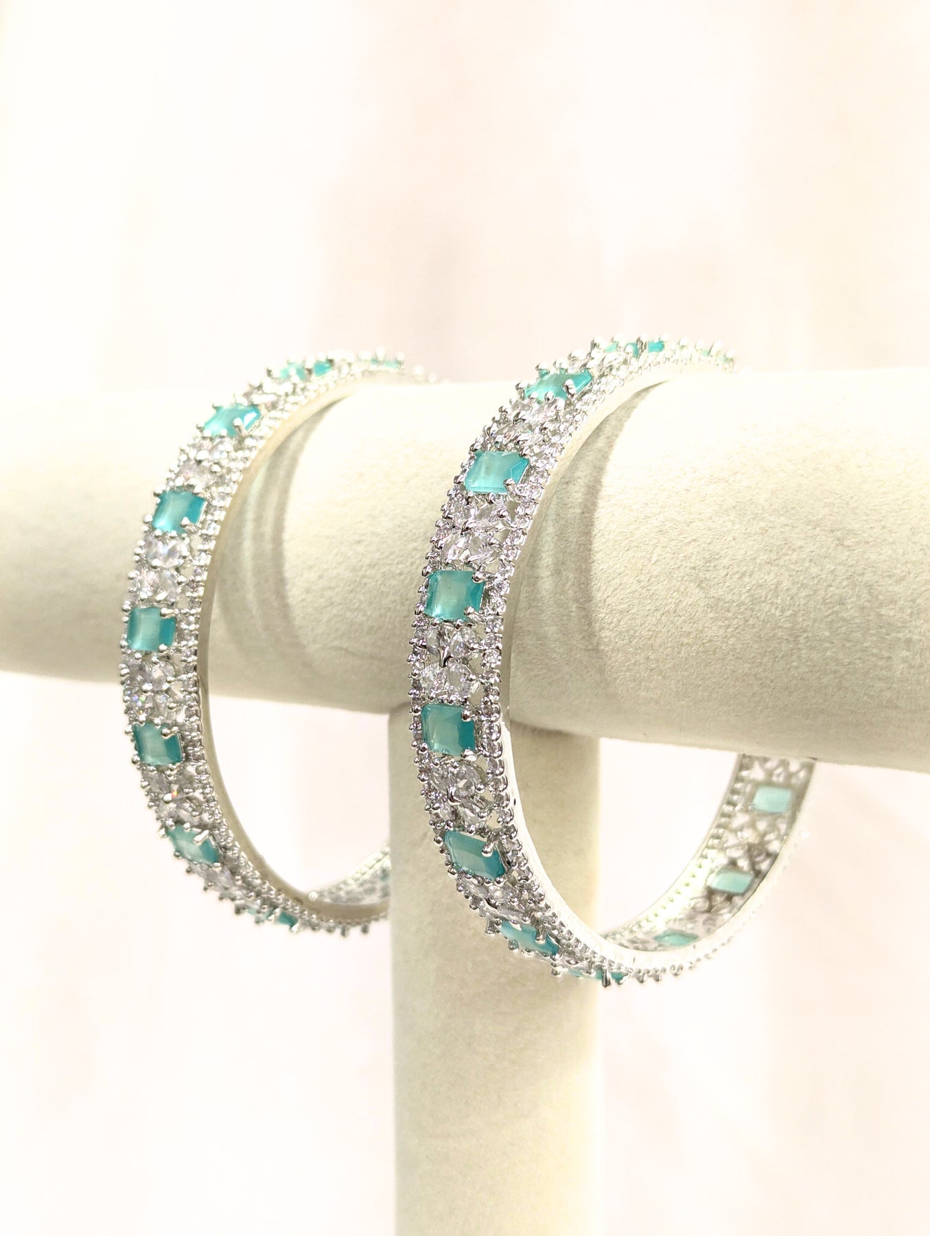 - Silver and Seafoam Green stone in a silver-colored base.