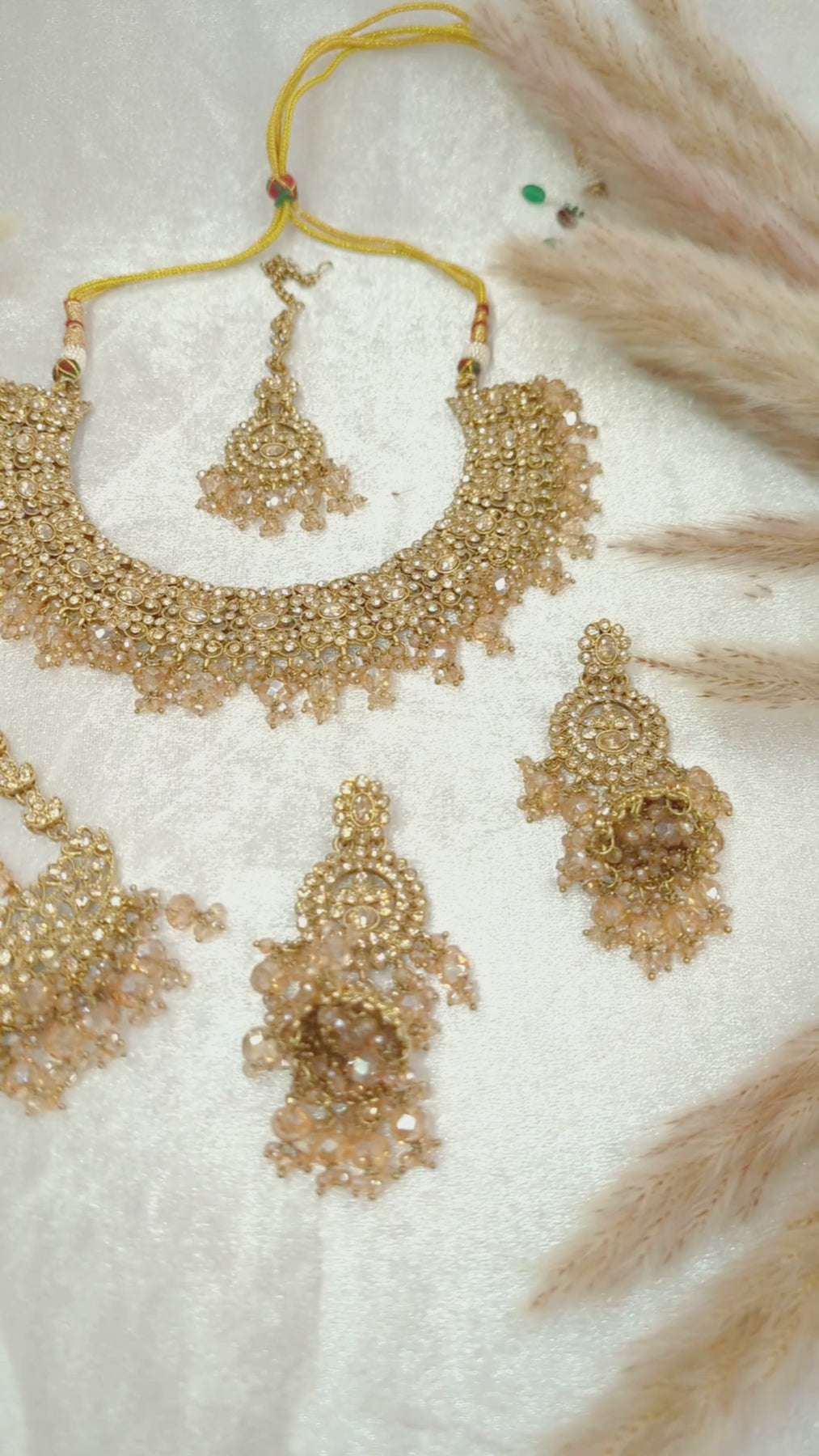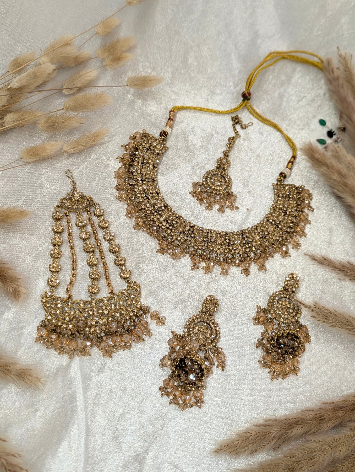 Complete 4-piece jewelry set: Necklace, Earrings, Maang Tikka & Jummar