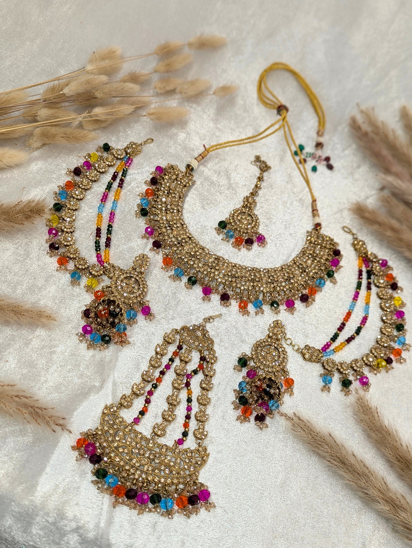 This set pairs beautifully with lehengas, sarees, gowns, and all traditional outfits. The added jummar gives a royal, Mughal-inspired touch, making it perfect for bridal and special occasion looks.